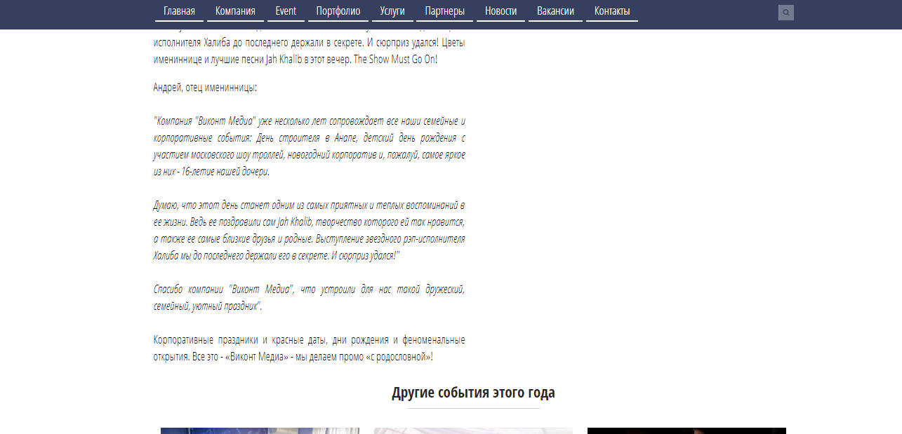 Корпоративные праздники и красные даты, дни рождения и феноменальные открытия. Все это - "Виконт Медиа" - мы делаем промо "с родословной"!