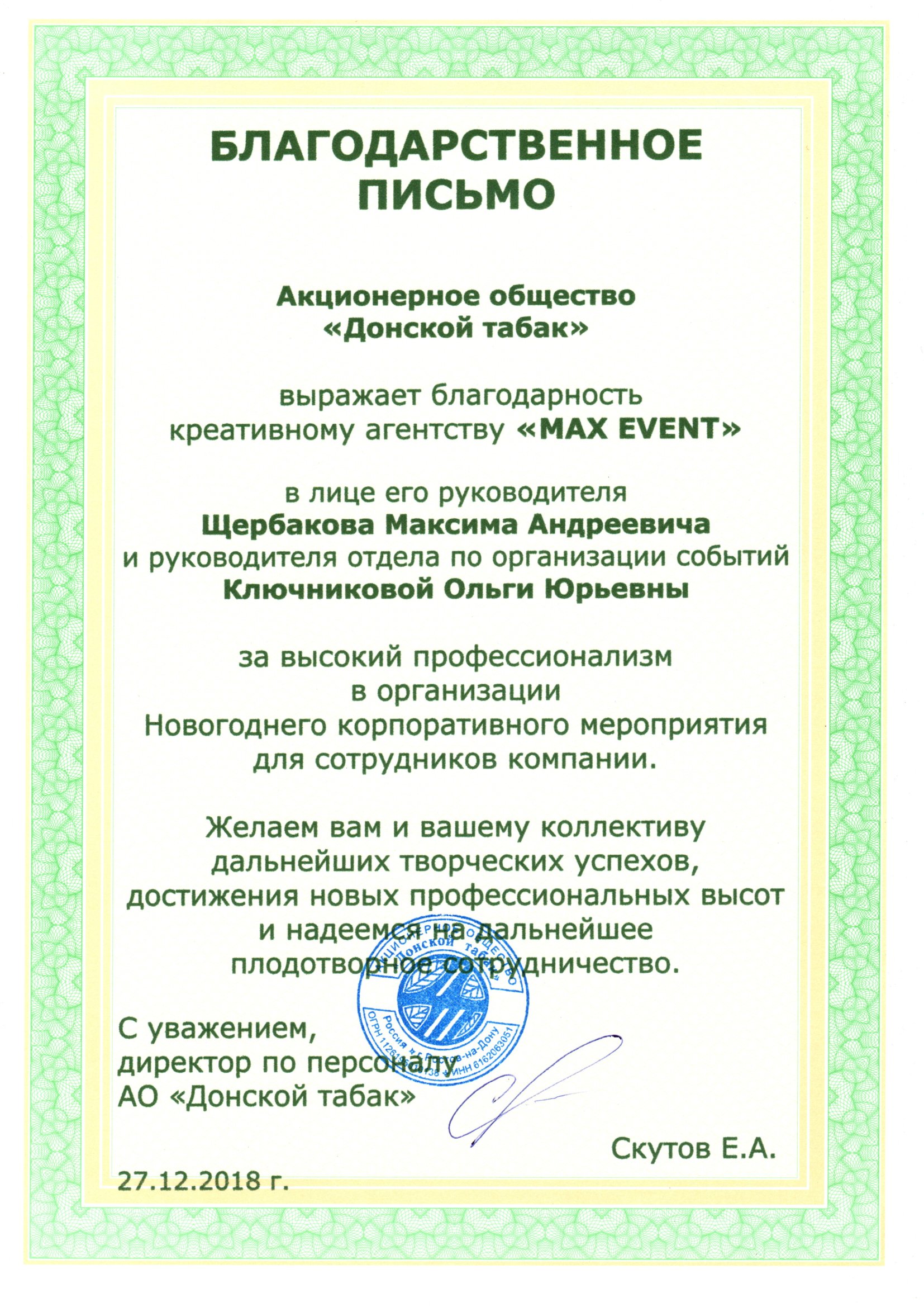 - Поздравить работников АО "Донской табак" с Новым годом,