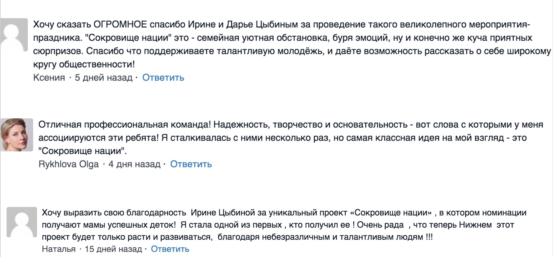 Проект является абсолютно новым и не имеет аналогов. В данном проекте мы смогли затронуть сразу несколько социальных тем "Поддержка материнства и детства", "Привитие культуры юному поколению", "Поддержка уникальных и талантливых детей" . Проект "Сокровище нации" вызвал отклик у многих людей, которые считают немаловажным освещение данных проблем и готовы в будущем помогать в их решении.