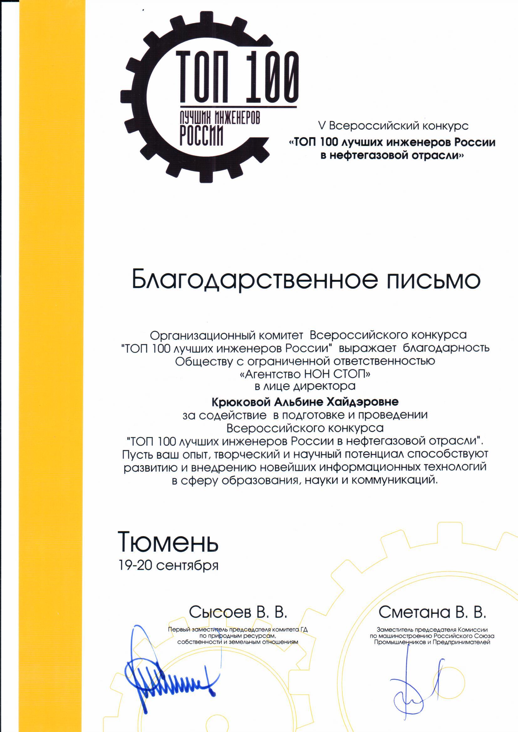 После проведения данного конкурса из года в год формируется Рейтинг "ТОП 100 лучших инженеров России".