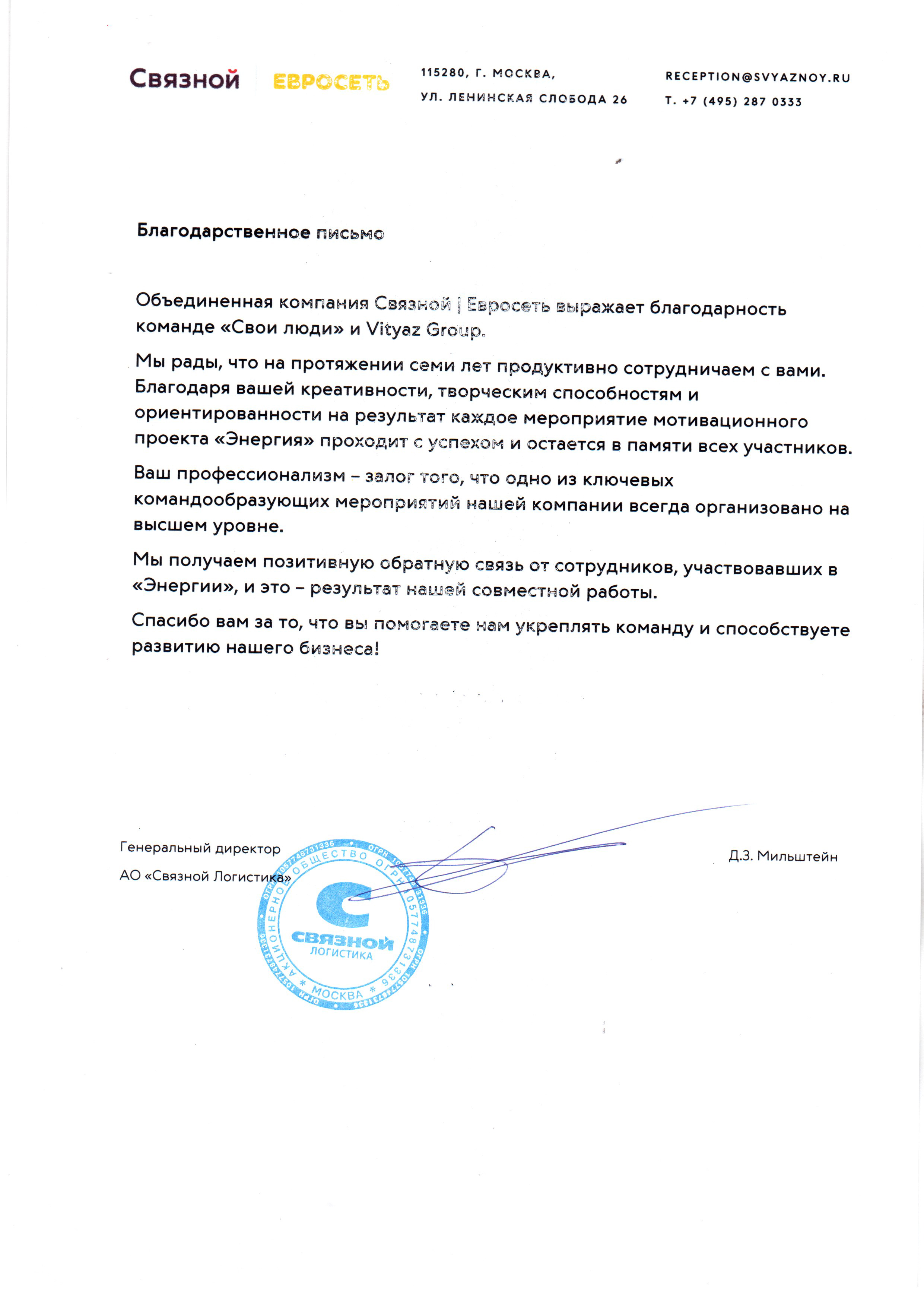 Работа нашей компании и компании «Свои Люди» была высоко оценена руководством «Связного».