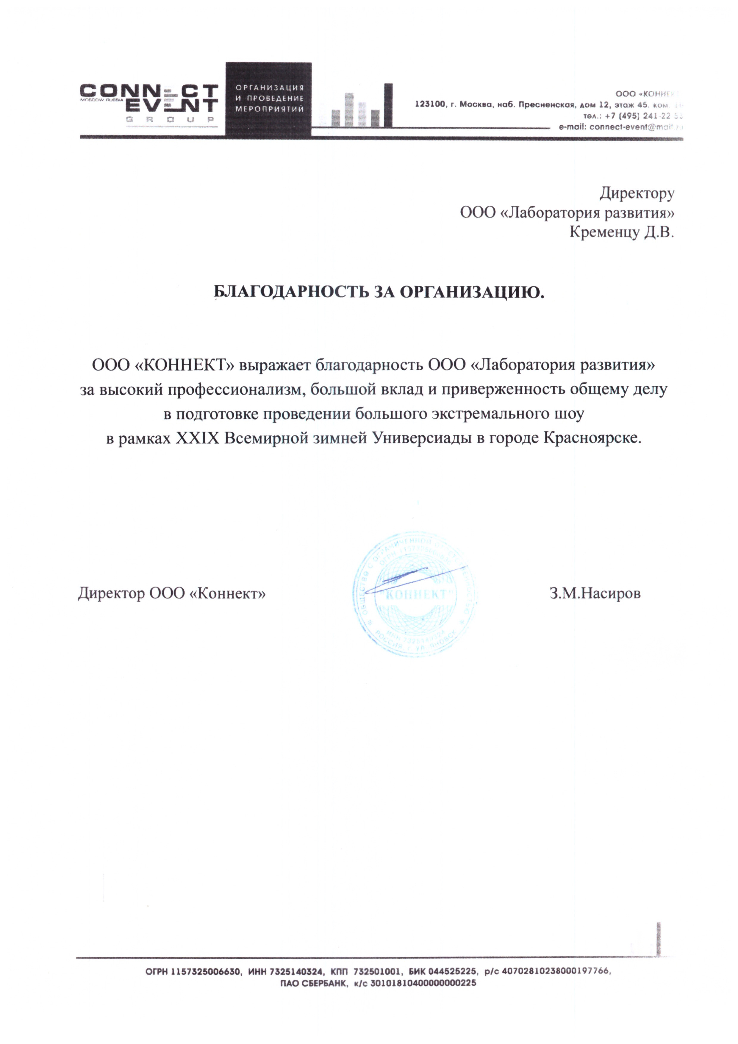 В период проведения Зимней универсиады 2019 организовать спортивно-культурное Мероприятия для всех целевых аудиторий гармонично совмещающего в себе презентацию современных экстремальных видов спорта и шоу-программу, рассказывающую о культуре, людях и природе Енисейской Сибири.