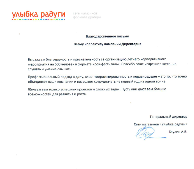 • Максимальная вовлеченность сотрудников, включая топ-менеджмент компании в процесс подготовки и реализации события.