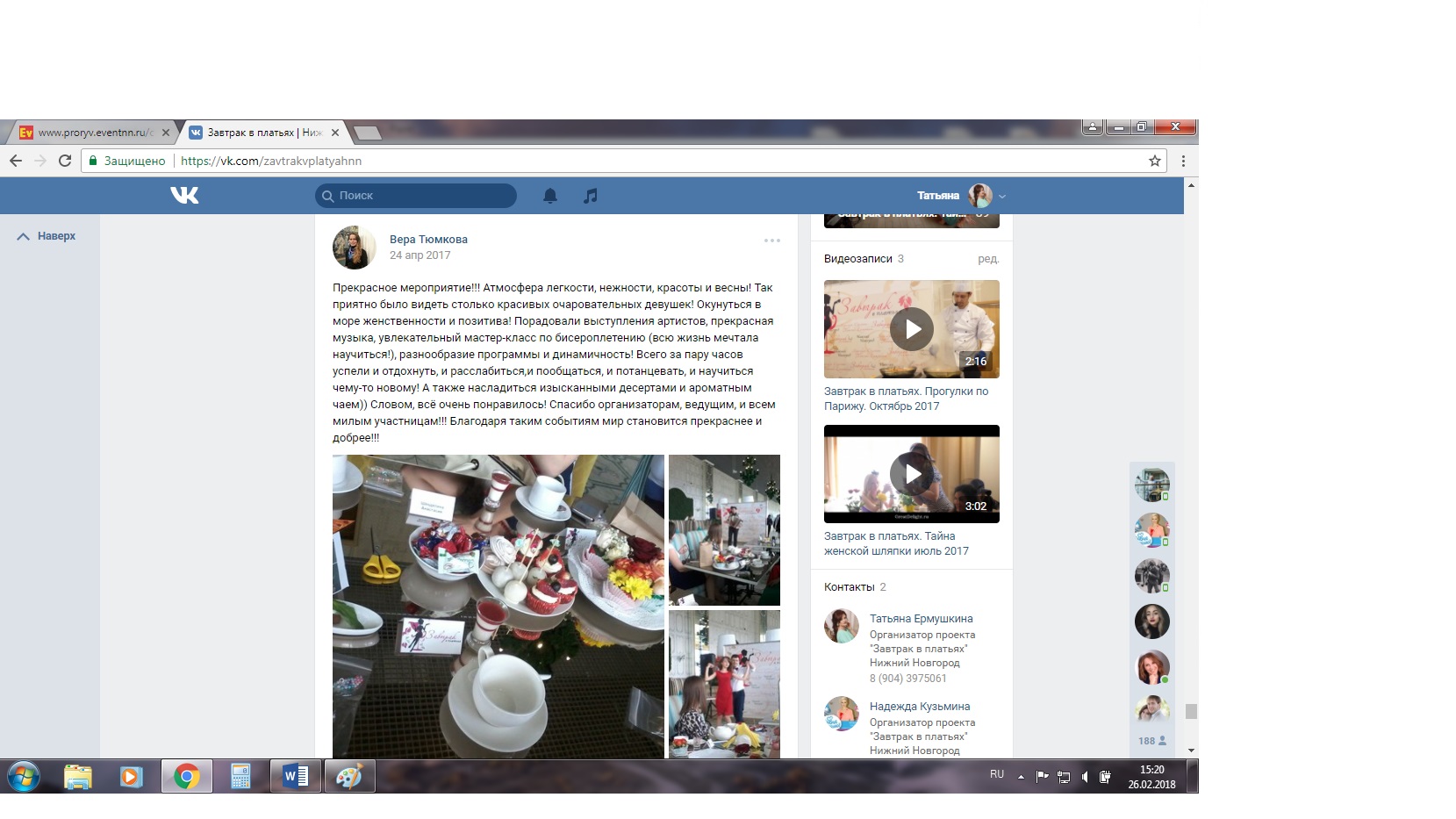 - индивидуальный пост в официальной группе вконтакте: vk.com/zavtrakvplatyahnn с шаблоном «партнер проекта», фотографиями, видео, ссылками на сайты.