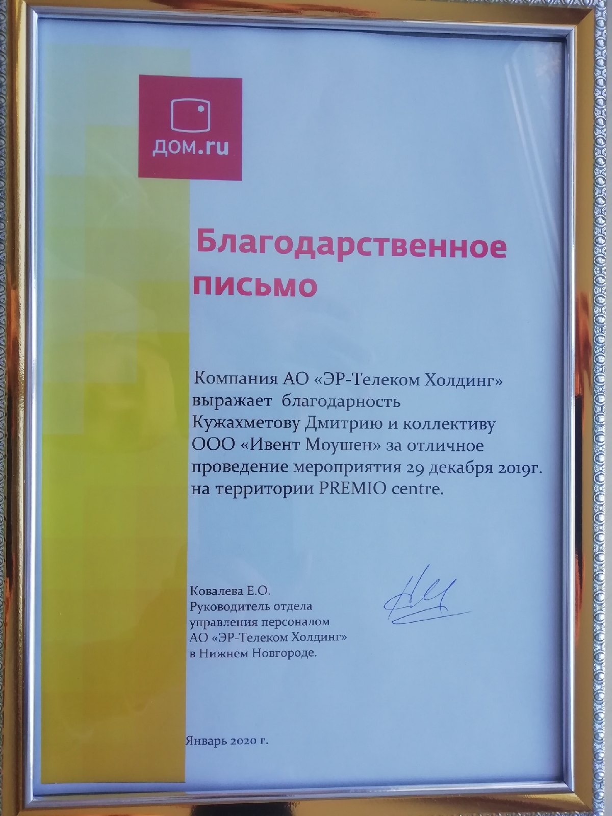Заказчик был полностью доволен мероприятием , наградил благодартсвенным письмом.