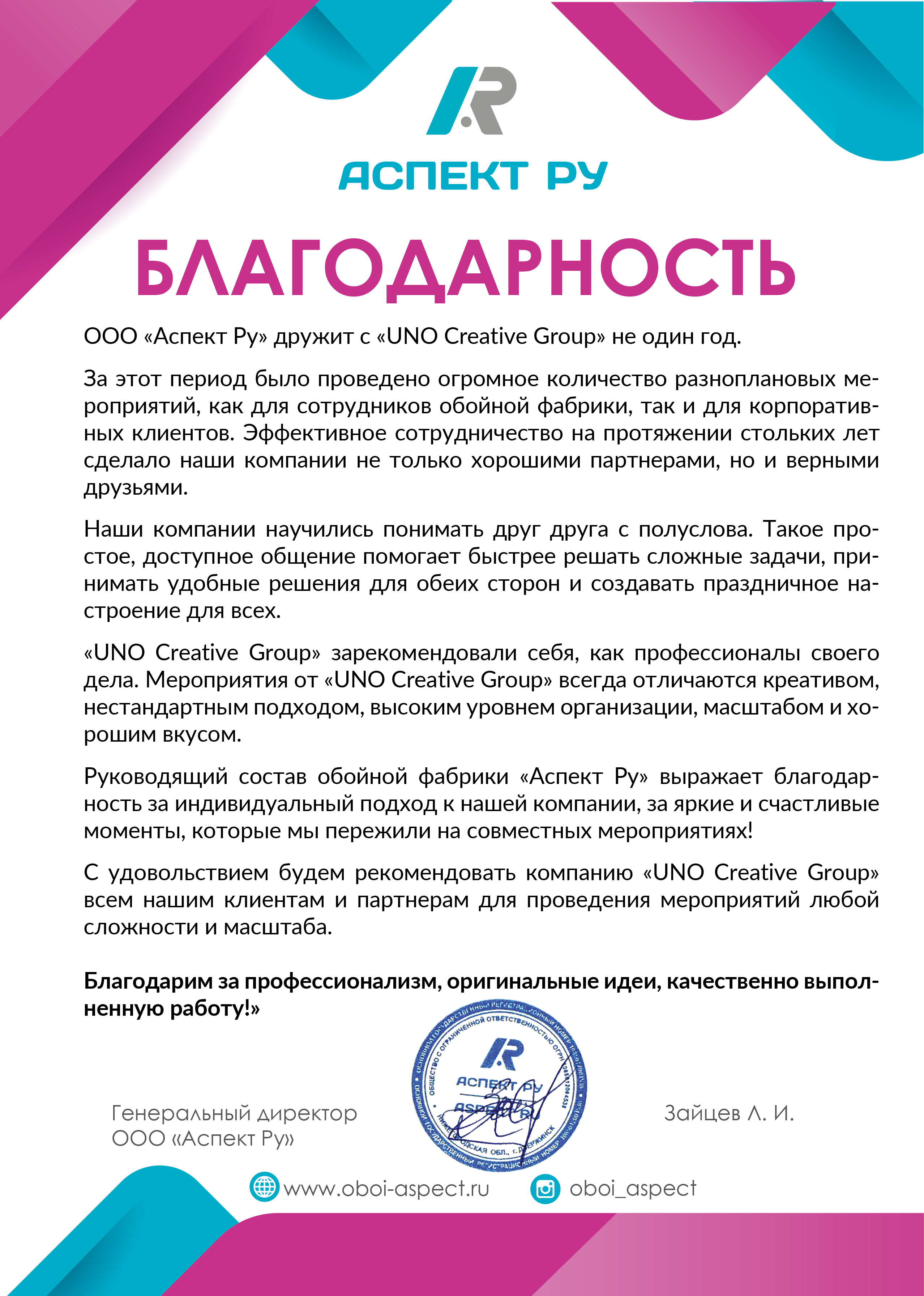 ЗаказчикОбойная фабрика "Аспект Ру"